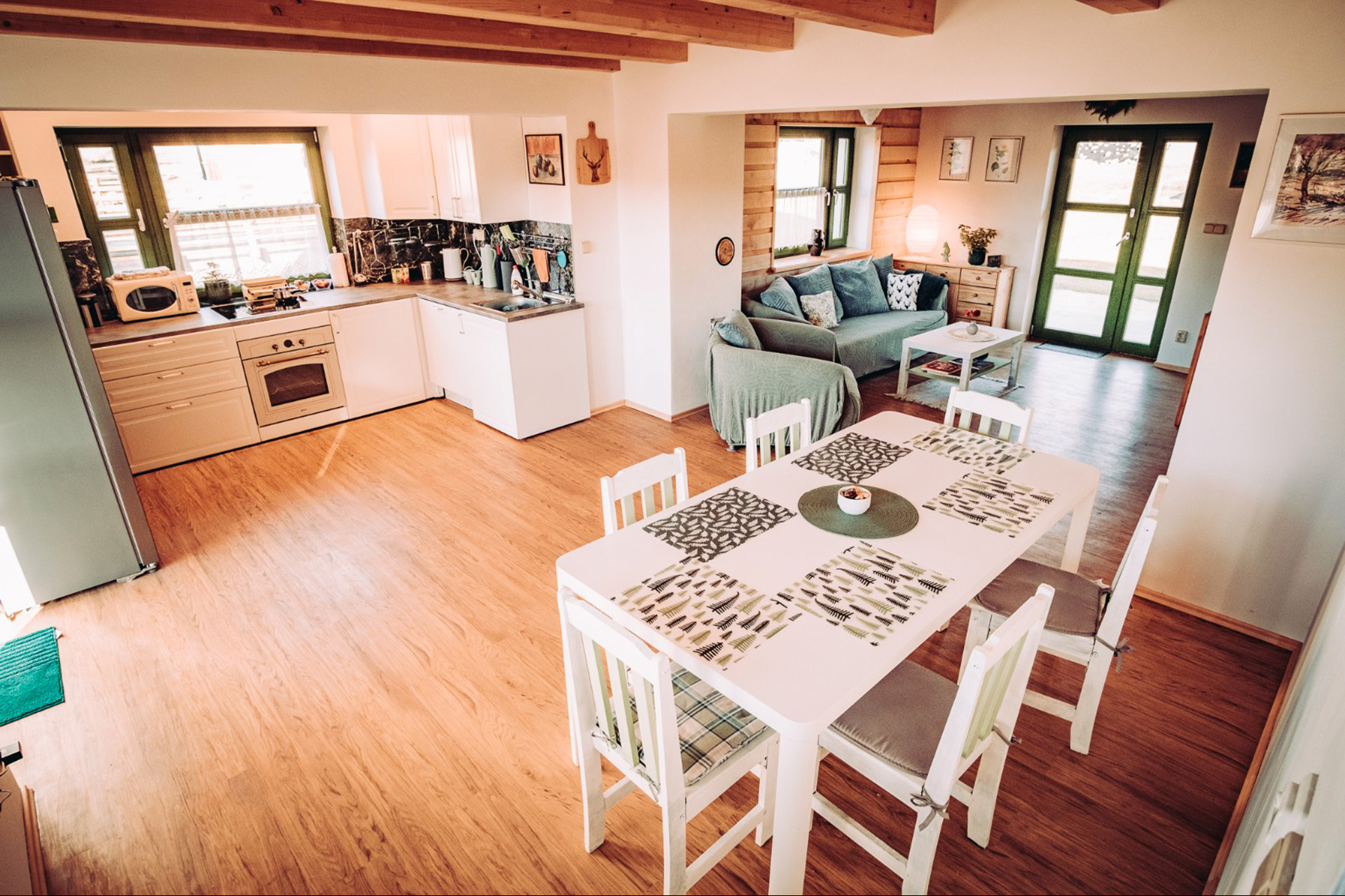 Interiéry apartmánů působí příjemně a moderně. Každý detail je navržen tak, aby ubytování nabízelo nejen funkčnost, ale i odpočinkovou atmosféru – kombinace dřeva, světla a promyšleného uspořádání vytváří prostředí, ve kterém je radost trávit dovolenou. Hosté mají k dispozici rychlé Wi-Fi připojení, plně vybavené kuchyně, pohodlné postele i kvalitní sociální zázemí.