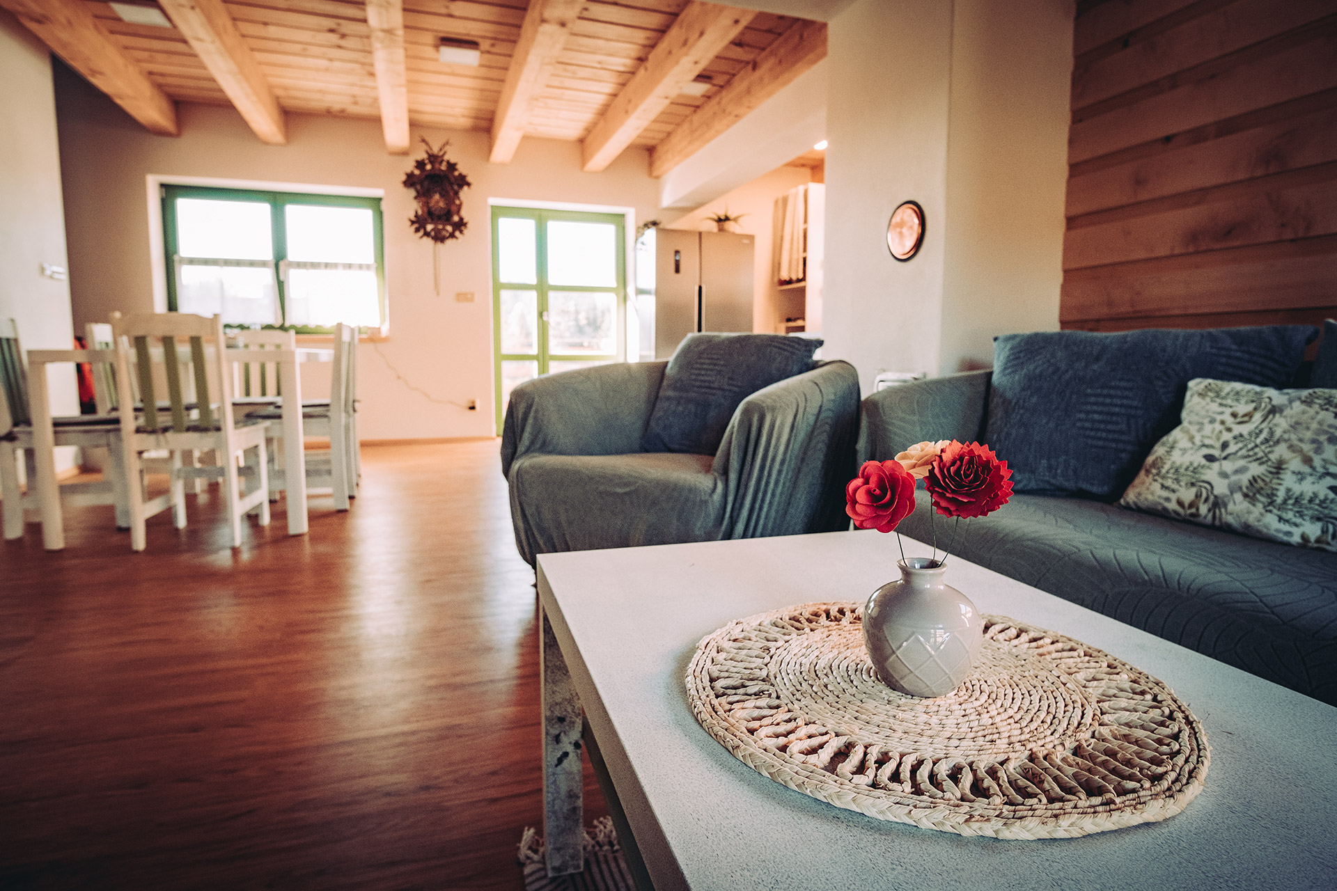 Velký apartmán navíc nabízí saunu a fitness koutek, což potěší každého, kdo si chce po dni stráveném v přírodě dopřát trochu wellness nebo aktivního pohybu pod střechou. Společná zahrada s posezením a ohništěm pak zve k večernímu grilování nebo posezení u ohně.