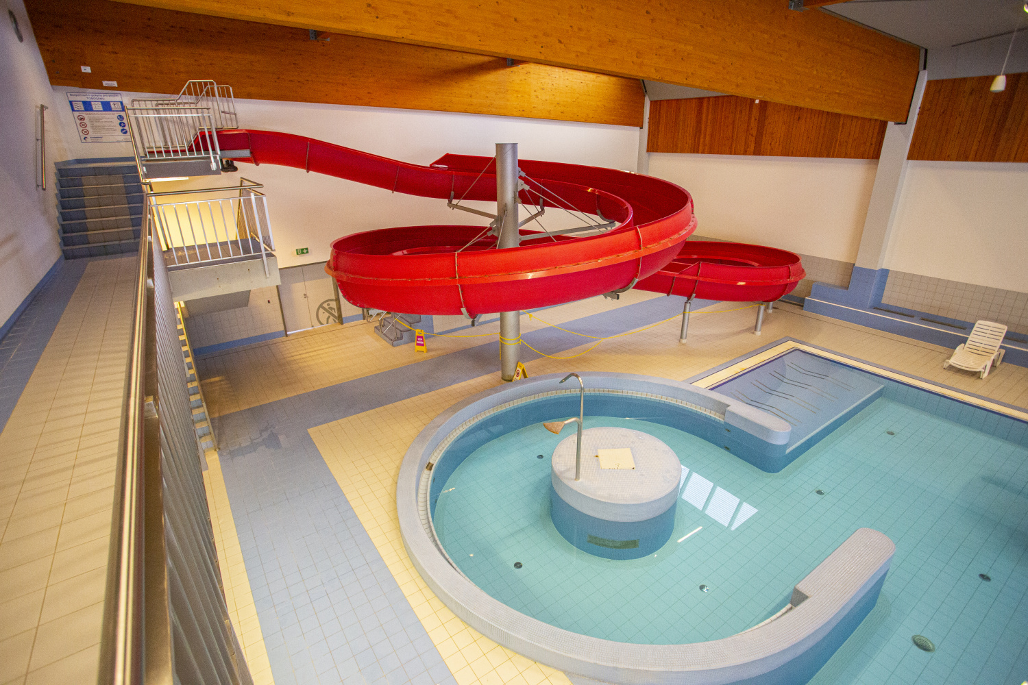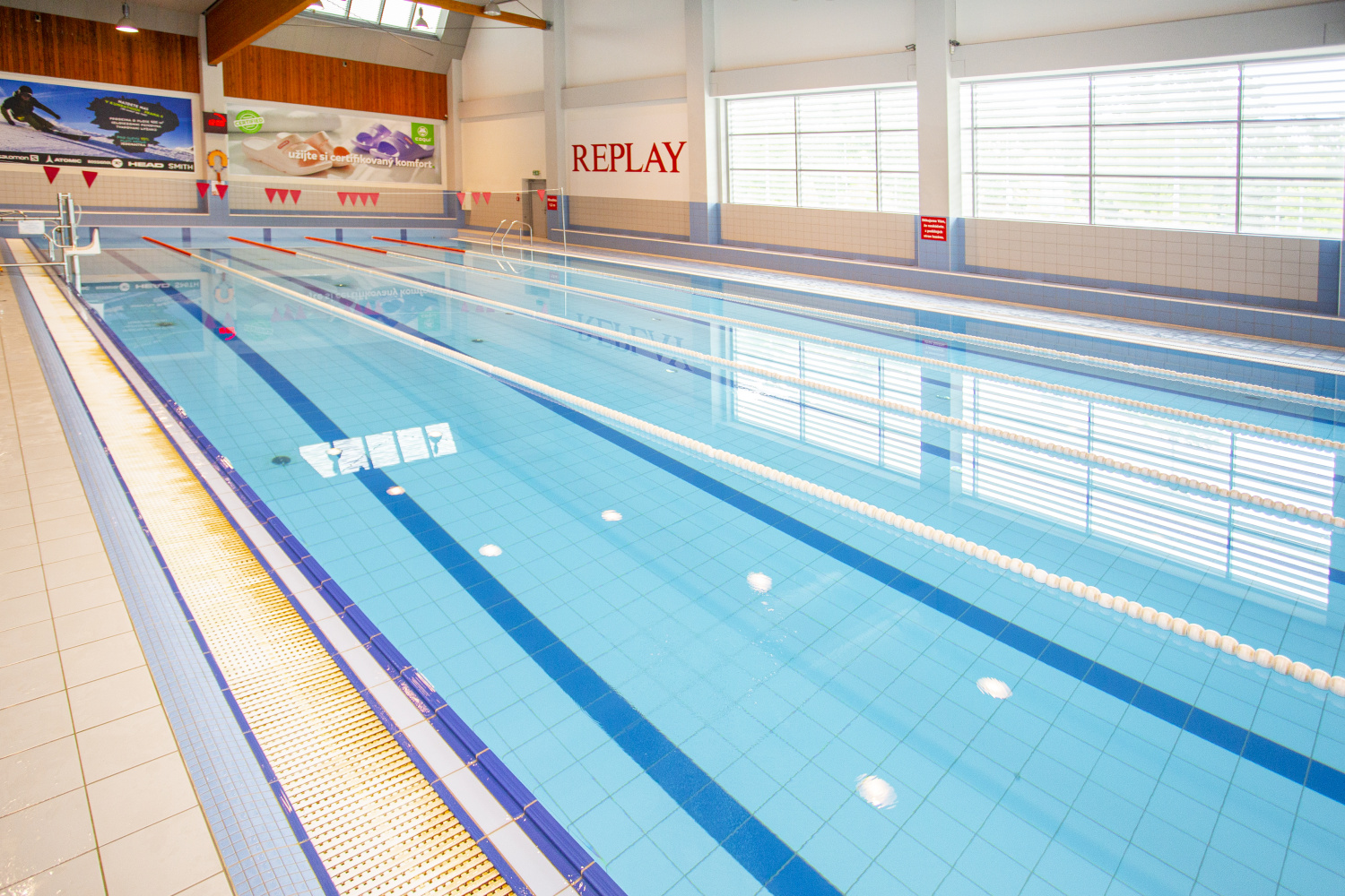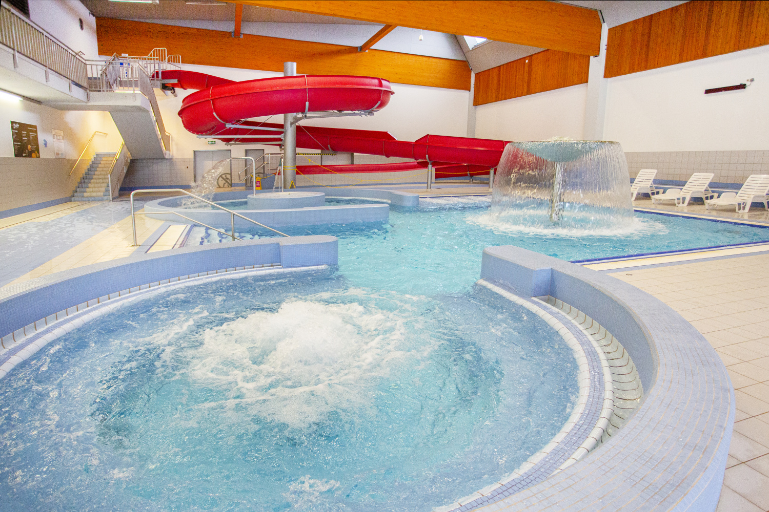 Centrem vodních aktivit je 25metrový plavecký bazén s pěti drahami, z nichž dvě jsou vyhrazeny pro kondiční plavání. Teplota vody činí příjemných 27 °C. Pro rekreační využití je k dispozici víceúčelový bazén s hloubkou 1,2 m a teplotou 30 °C, vybavený masážními lehátky, vířivkou, chrliči i proudovou „divokou“ řekou. Malé děti ocení brouzdaliště s hloubkou od 10 do 40 cm a teplotou vody 30 °C. Milovníci adrenalinu se mohou sklouznout na 42 metrů dlouhém tobogánu.