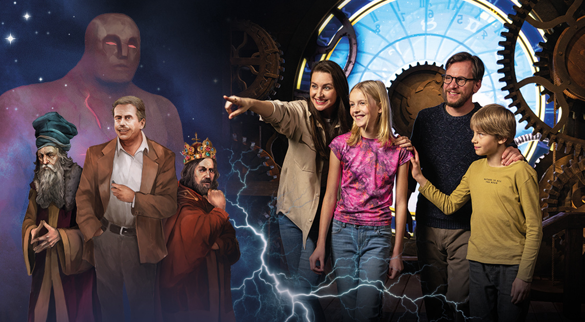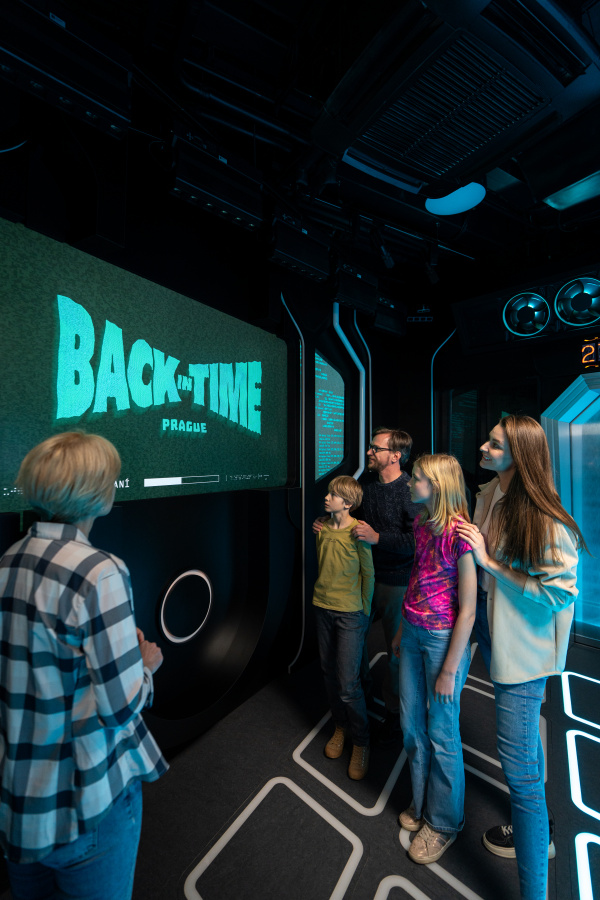 Stroj času je první místností expozice a vstupní branou do světa české historie. Právě tady se dostanete do děje. Projekce, animace a zvukové efekty vytvářejí atmosféru, která vás pohltí od prvního okamžiku. Stroj času tak otevírá cestu napříč 1200 lety dějin, které vás čekají v dalších částech Back in Time. A kam dále vás cesta zavede? Těšte se na Počátky Prahy, Karla IV., Pražský orloj, Golema, 5D kino, Pražské povstání a Síň slávy. Objevte legendy, které formovaly Prahu díky precizně vykresleným obrazům a postavám, které doslova ožijí před vašima očima. Každý zážitek je pečlivě navržen tak, aby vás vtáhl do světa plného dramatických vizuálních efektů, živých zvuků a pohlcujících animací. Samozřejmostí jsou také synchronizované světelné show vytvářejí dechberoucí kulisy, ale i autentické vůně, jež prohlubují smyslový zážitek.