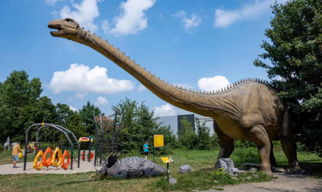 V DinoParku najdete desítky precizně zpracovaných modelů dinosaurů. Malé i obrovské, statické i pohyblivé, ozvučené i ty, kteří jsou raději potichu. Každou sezónu přibývají noví a ještě lepší. Nově také ve všech DinoParcích v ČR potkáte malé chodící robotické mládě stegosaura, se kterým můžete několikrát denně vyrazit na procházku po parku.