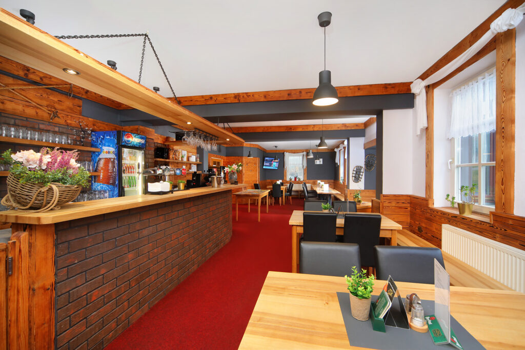 To, že hotely mají restaurace není nic mimořádného, ale tato hotelová restaurace mimořádná je. Místní kuchyně vaří, jak se říká, hezky česky a máte tu možnost pochutnat si na krkonošských specialitách i na mezinárodní kuchyni. Kdo má rád polévky jistě si nenechá ujít místní kulajdu. Milovníci masitých pokrmů určitě ocení Krakonošovu roštěnou podávanou s omáčkou z restované cibule a žampionů nebo výbornou svíčkovou. Mlsné jazýčky potěší i nabídka domácí dezertů, které se přímo rozpadají na jazyku. Těšte se na čerstvě upečený jablečný závin nebo na kynutý borůvkový knedlík s tvarohem, přelitý máslem, sypaný tvarohem, s domácí šlehačkou. . . A protože k dobrému jídlu patří i dobré pití, čepují tu české pivo a míchají domácí limonády.
