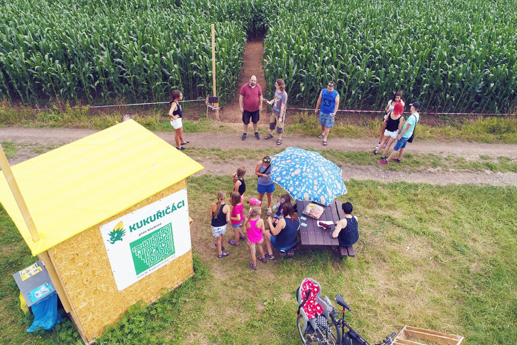 Kukuřičné bludiště je druh rodinné zábavy, který je u nás novinkou. Velké oblibě se bludiště těší v USA, Velké Británii či sousedním Německu. Nyní přichází k nám do České republiky, a to ve velkém! Navštívit můžete 19 různých kukuřičných bludišť na mnoha místech po celé ČR, které jsou větší než fotbalové hřiště. Každé bludiště má originální plánek a při bloudění v kukuřičných uličkách se můžete těšit i na hry, které váš zážitek z návštěvy bludiště umocní. Cílem projektu bludišť je dostat děti na čerstvý vzduch a přimět je k pohybu.