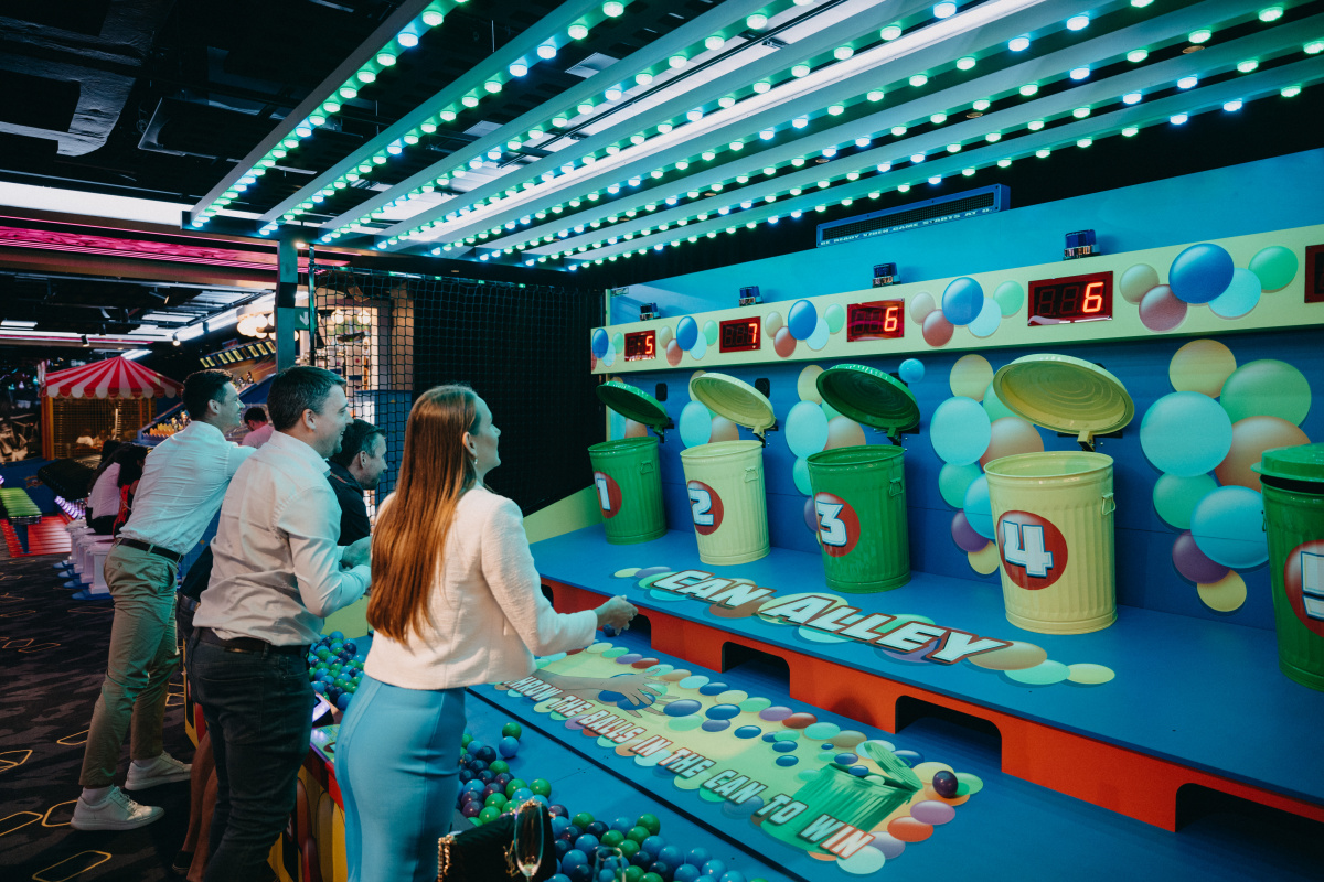 Ve třech patrech návštěvníci najdou minigolf, autodrom, kuželky, šipky a kulečníky. Významnou část centra tvoří závodní simulátory a více než 200 arkádových her, které zahrnují jak klasické herní automaty, tak moderní digitální hry.