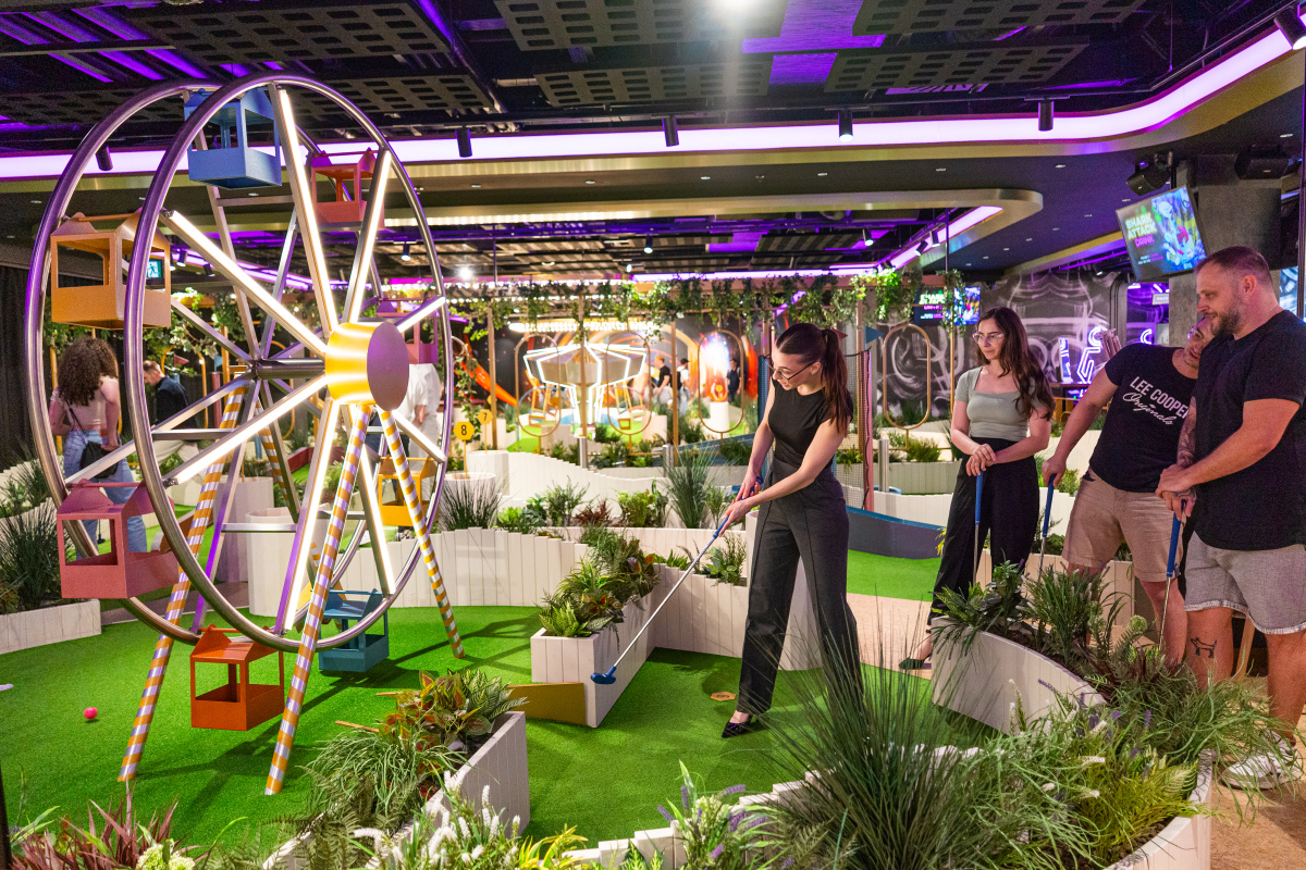 • Součástí nabídky jsou minigolf, autodrom, kuželky, šipky, kulečníky a závodní simulátory.