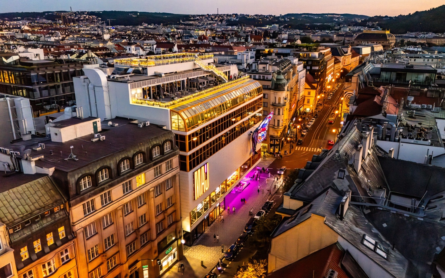 Máj – House of Fun na rohu Národní a Spálené patří k nepřehlédnutelným ikonám české architektury 70. let. Budova, kterou zná téměř každý Pražan i návštěvník centra města, prošla rozsáhlou rekonstrukcí a v červnu 2024 se znovu otevřela v novém kabátě jako moderní obchodně-zábavní destinace.