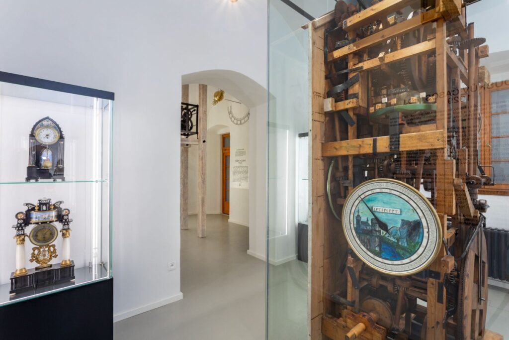 V expozici Strážci času je umístěn mimo jiné unikátní „časostroj“ sestavený roku 1929 bednářem Janem Linduškou. Má osm rozdílných ciferníků a je opatřen kalendářem s 13 měsíci. Přímo v expozici si můžete zkusit natáhnout závaží a rozkývat hodinové kyvadlo nebo se podívat na reálné znázornění funkce slunečních hodin.