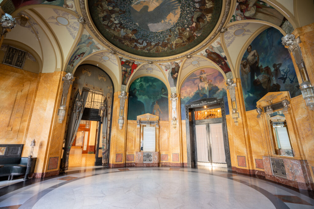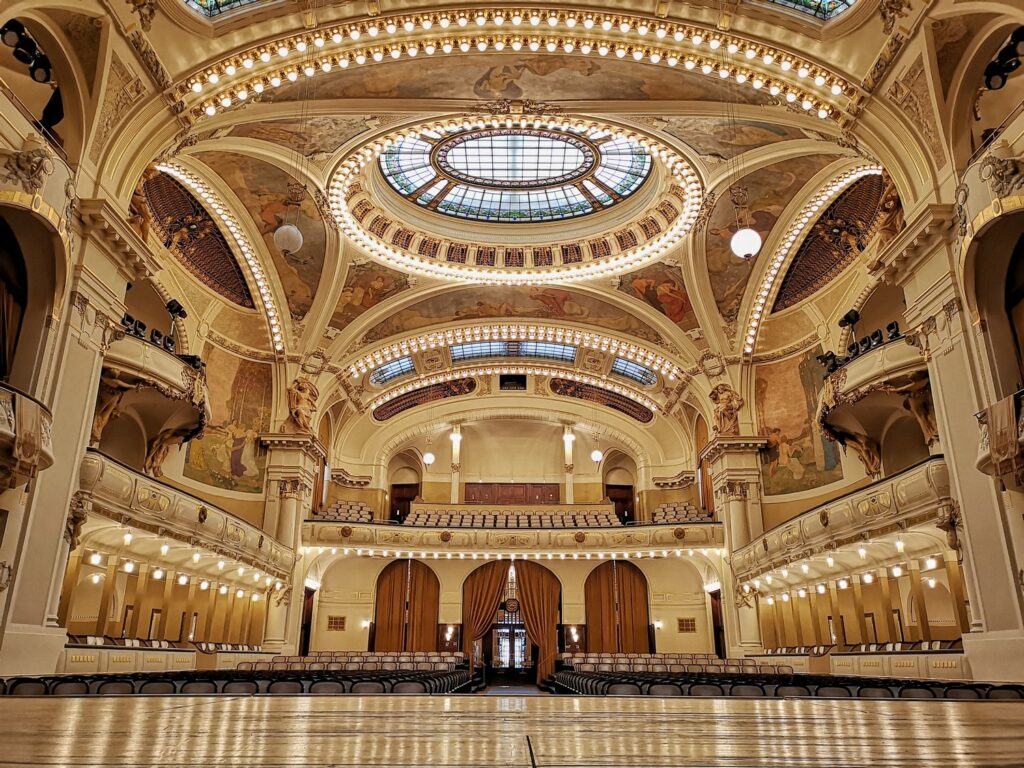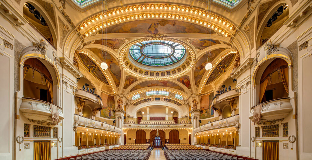 Obecní dům byl postaven na počátku 20. století a představuje vrchol secesní architektury. Jeho interiéry zdobí práce předních českých umělců té doby, což z něj činí skutečný klenot mezi pražskými památkami. V Obecním domě se pravidelně konají koncerty, výstavy a další kulturní akce. Smetanova síň je hlavní koncertní prostor, který hostí vystoupení předních orchestrů a sólistů z celého světa. Návštěvníci mají možnost zúčastnit se komentovaných prohlídek, které je seznámí s historií a architekturou budovy. Kromě toho Obecní dům pravidelně pořádá výstavy zaměřené na umění, historii a design.