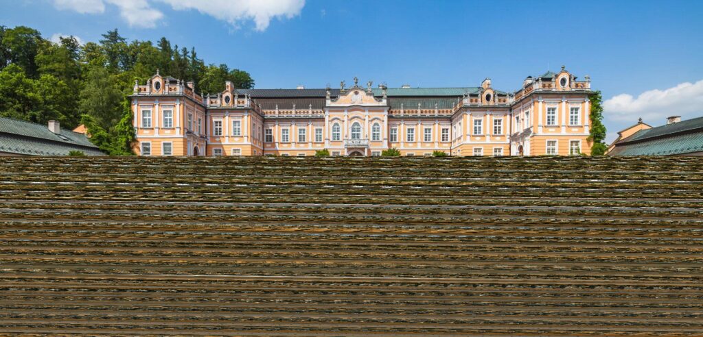 Rokokový zámek postavil v 18. století šlechtic Jean-Antoine Harbuval de Chamaré. Inspirován architekturou francouzských letních sídel je zámek nejčistší ukázkou rokoka v České republice. Dnes soukromý zámecký areál tvoří 20 hektarový ucelený komplex s romantickými zahradami, rozlehlým parkem a historickými hospodářskými budovami. Návštěvníkům nabízí odpočinek v zeleni proměňující se v ročních obdobích a historický vhled do estetiky na přelomu rokoka a klasicismu. Návštěvníkům je k dispozici kavárna s galerií a restaurace. Zámek můžete navštívit denně od května do konce září a v dubnu a říjnu je otevřeno o víkendech a svátcích. Vstup do zámeckého areálu je zpoplatněn.