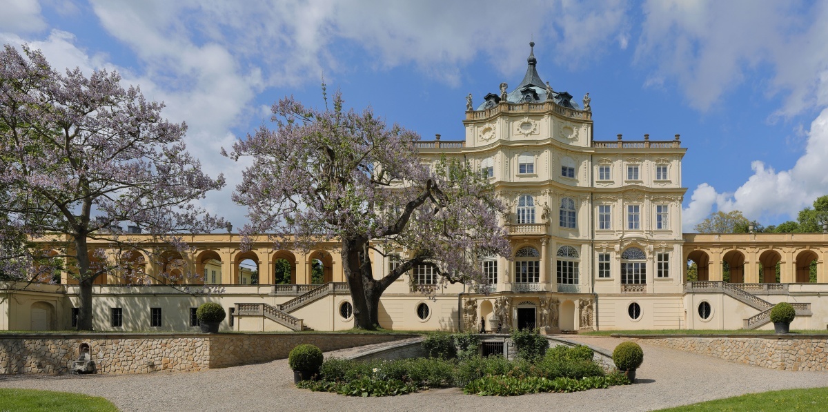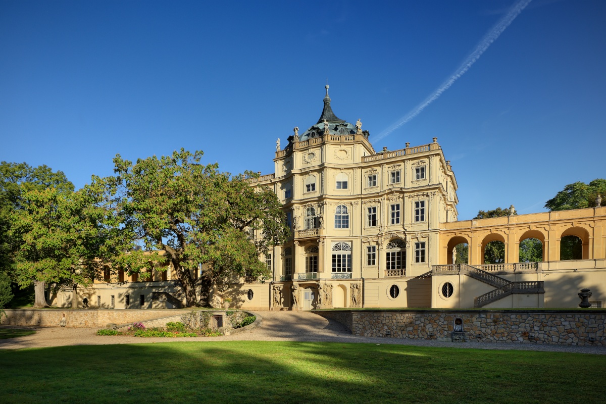 Zámek Ploskovice byl vystavěn v první čtvrtině 18. století jako letní rezidence velkovévodkyně Anny Marie Františky Toskánské. Svou koncepcí a výzdobou odpovídal tehdejší reprezentační architektuře inspirované italským barokem a orientálními motivy, díky nimž bývá přirovnáván k menší zámecké variantě Versailles.